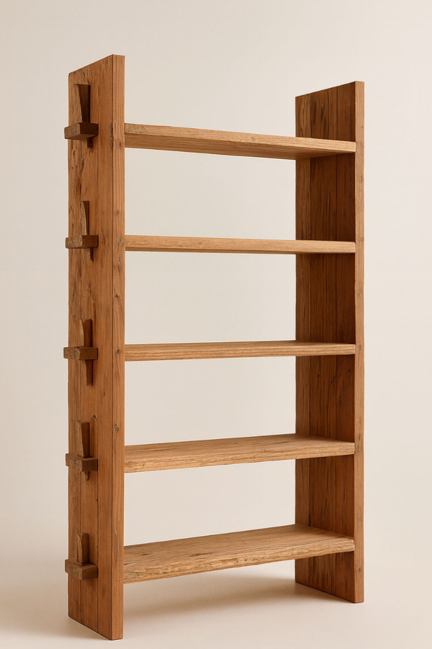 Rustic Reclaimed Teak Shelving Unit – 90cm Wide – Handcrafted Peg Detail