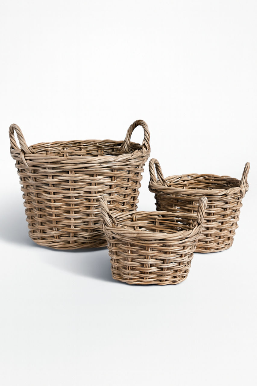 Kubu Rattan Round Basket Set of 3 – Large, Medium & Small
