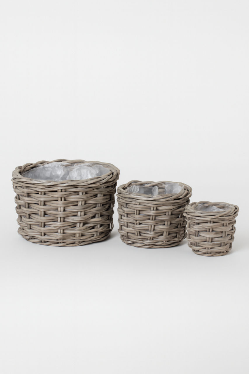 Hand Woven Kubu Rattan Planter Set with Plastic Lining – Set of 3 – Pack of 3