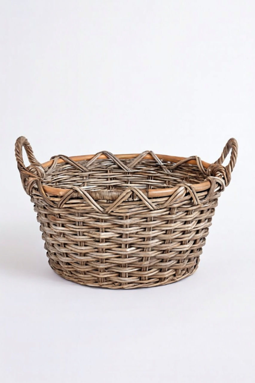 Hand-Woven Kubu Rattan Basket with Handles – Natural – 53 cm
