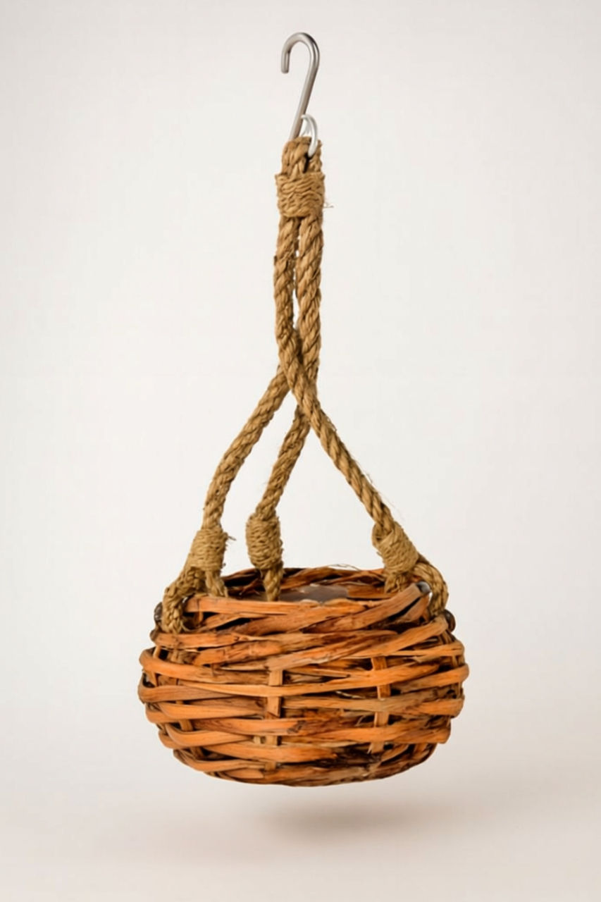 Hand Woven Rattan Hanging Basket with Plastic Lining – 15 cm – Pack of 4