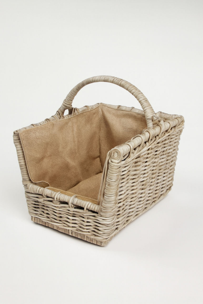 Kubu Rattan Open-Front Log Basket – Hessian Lined with Handle | H50 x W37 x D50