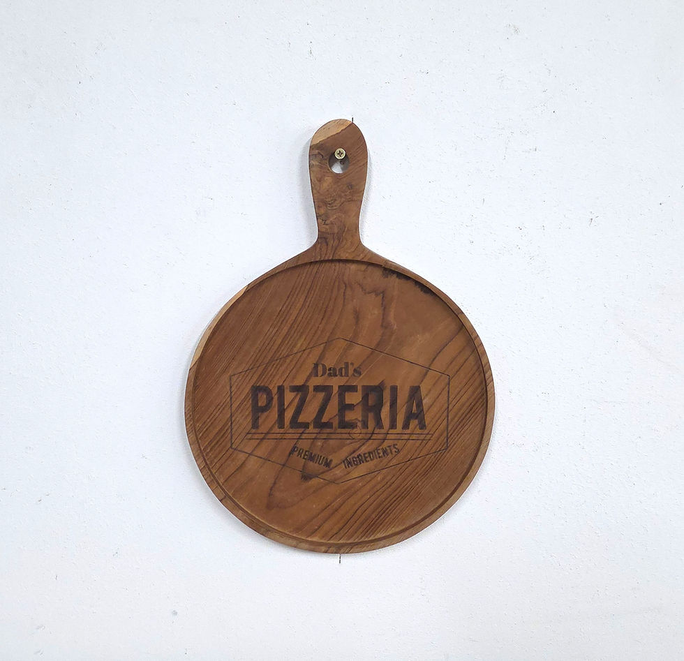 Solid Teak Round Pizza & BBQ Board with Handle | “Dad’s Pizzeria” Pack of 2
