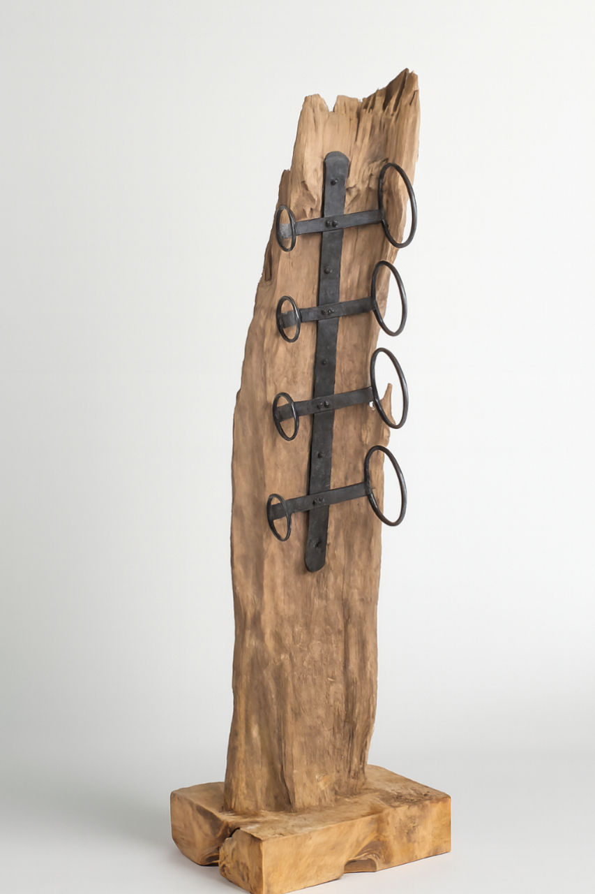 Set of 3 Solid Teak “Tree Trunk” Wine Bottle Racks – Floor Standing